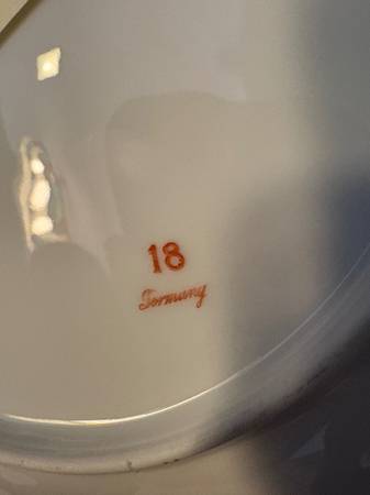 Rose plate with gold rim. Red backstamps 18 Germany. Made between 1887 and 1920's.