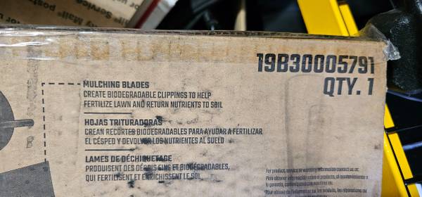 Includes 3 Xtreme mulching blades, molded plug, mounting hardware and instructions