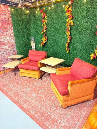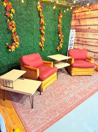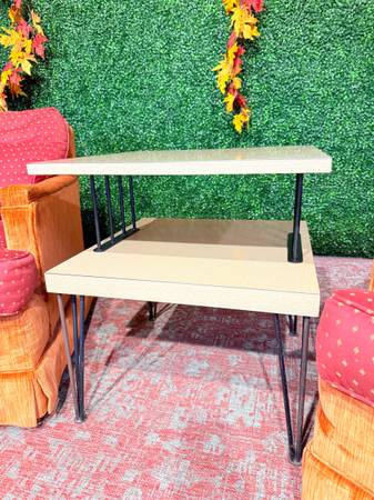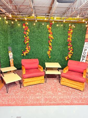 These mid-century modern chairs come with two end tables. Everything is in great shape!