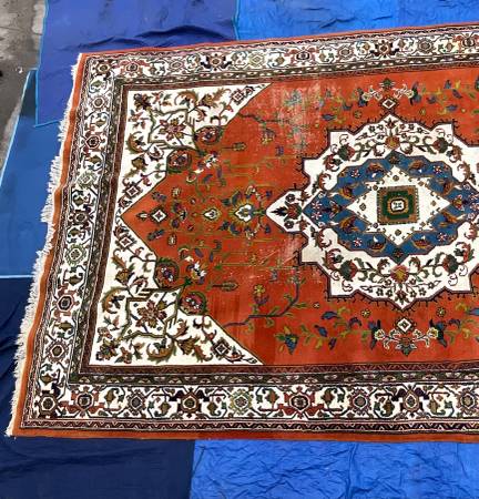 This has not been used since a $468 cleaning. Parts of the rug are in good condition but there are very worn areas that make the condition overall poor.