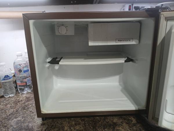This is a KENMORE countertop refrigerator. It measures 18.5"W x 16.5"H x 20"D 1.7 Cu. Ft. Great for camping or in the garage for cold drinks. Also has small freezer area.