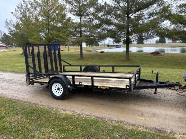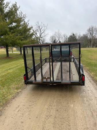 7x12 landscape trailer with rear ramp very heavy made and built heavier than others has working lights tows great and good floor very handy size trailer asking 1550 Lewisburg Ohio thanks no trades...